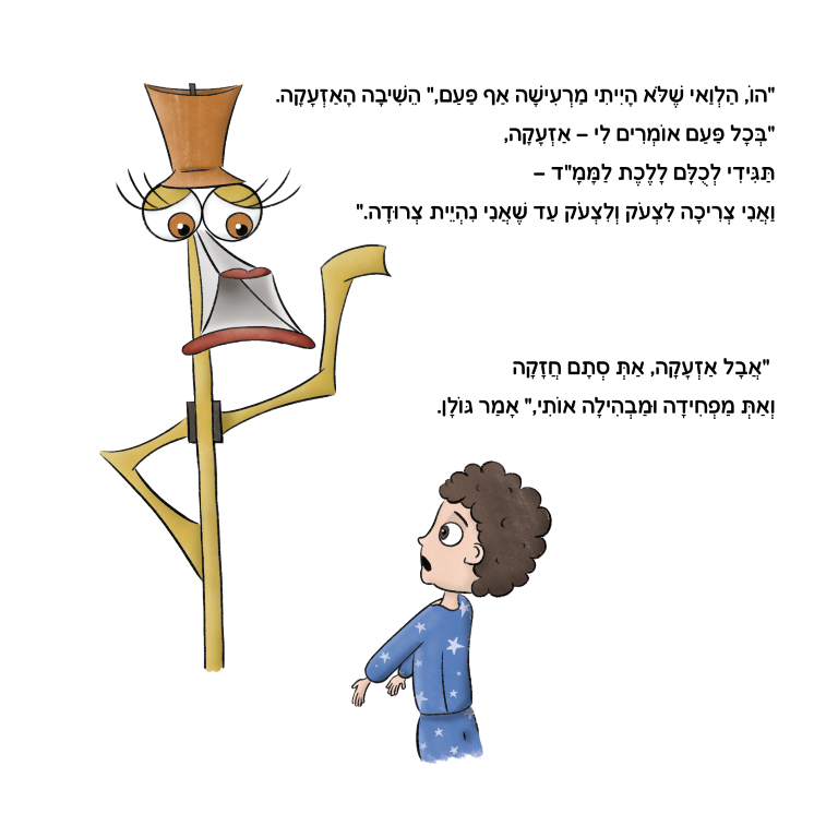 אנחנו יודעים, זה באמת לא פשוט. אנחנו מאמינים שחשיפה דרך הספר, שנוצר במיוחד לילדים, יכולה לעודד ויסות של התחושות השליליות בזמן אזעקה. כך למשל שבמקום לתפוס את האזעקה כחזקה ומאיימת, אולי אפשר להסתכל עליה כעל מי שרק רוצה להודיע לכולם ללכת מהר למרחב המוגן, ובגלל זה היא כל כך רועשת, עד שהיא ממש נהיית צרודה!